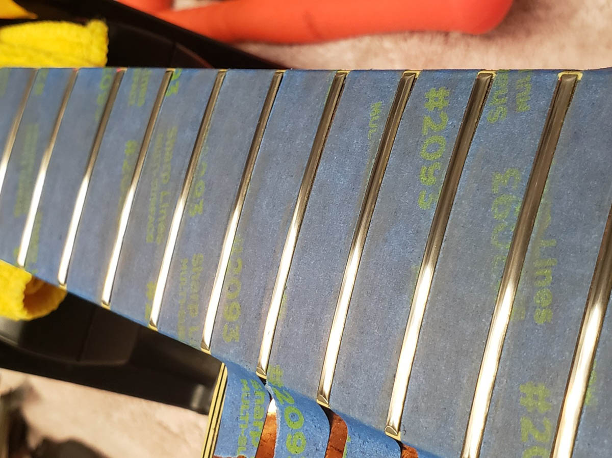 Fretwork consists of the proper radius and level of the frets to each other across the fretboard, over-all fret height, proper crowning and polishing. Level frets do not cause "buzzing", properly radiused, crowned, and polished frets allow for optimal playability. We do all type of fretwork including: Partial fret levels, Fret re-crowning and Fret polishing, and Full fret levels and re-dress. We also do fret replacement on any type of fretboard, including installation of stainless steel frets - the last fret you'll ever install... We also offer PLEK services through our partners at Wolfe Guitars. The PLEK machine is a computer-controlled machine used in guitar building and repair to achieve a precise fret leveling leading to an optimal set-up afterwards. It scans the guitar's neck and frets under the string tension of your preferred tuning with high accuracy, identifies areas needing adjustment, and then uses robotic tools to optimize fret height radius and crowns, ensuring optimal playability. The PLEK machine can level frets with extreme accuracy, often within thousandth's of a millimeter, which is far more precise than traditional hand-leveling methods. It uses CNC (computer numerical control) technology to scan the fretboard, analyze fret heights, and make adjustments with robotic precision. It can also be used as a diagnostic tool to identify potential issues with the neck, frets, and other parts of the guitar. PLEK allows for more consistent and precise fretwork, removal of the least amount of Fretwire (extending the life of your current frets) leading to improved playability, No fret buzz, and a better overall playing experience. Want to learn more? Call me today with any questions you may have!